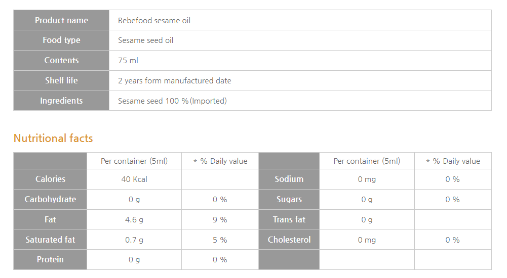 Contents: 75ml / 40kcal per 5ml / Sesame seed 100%