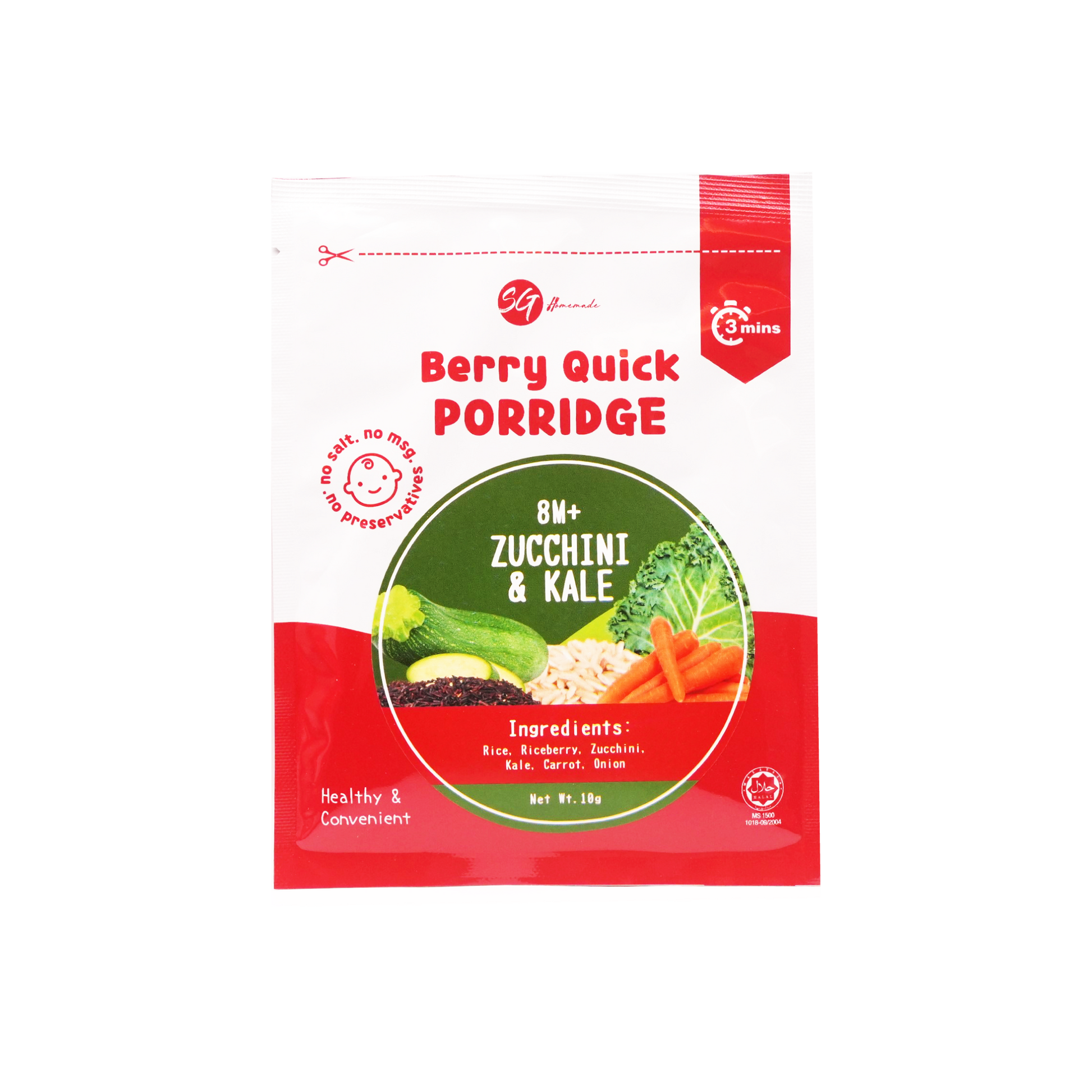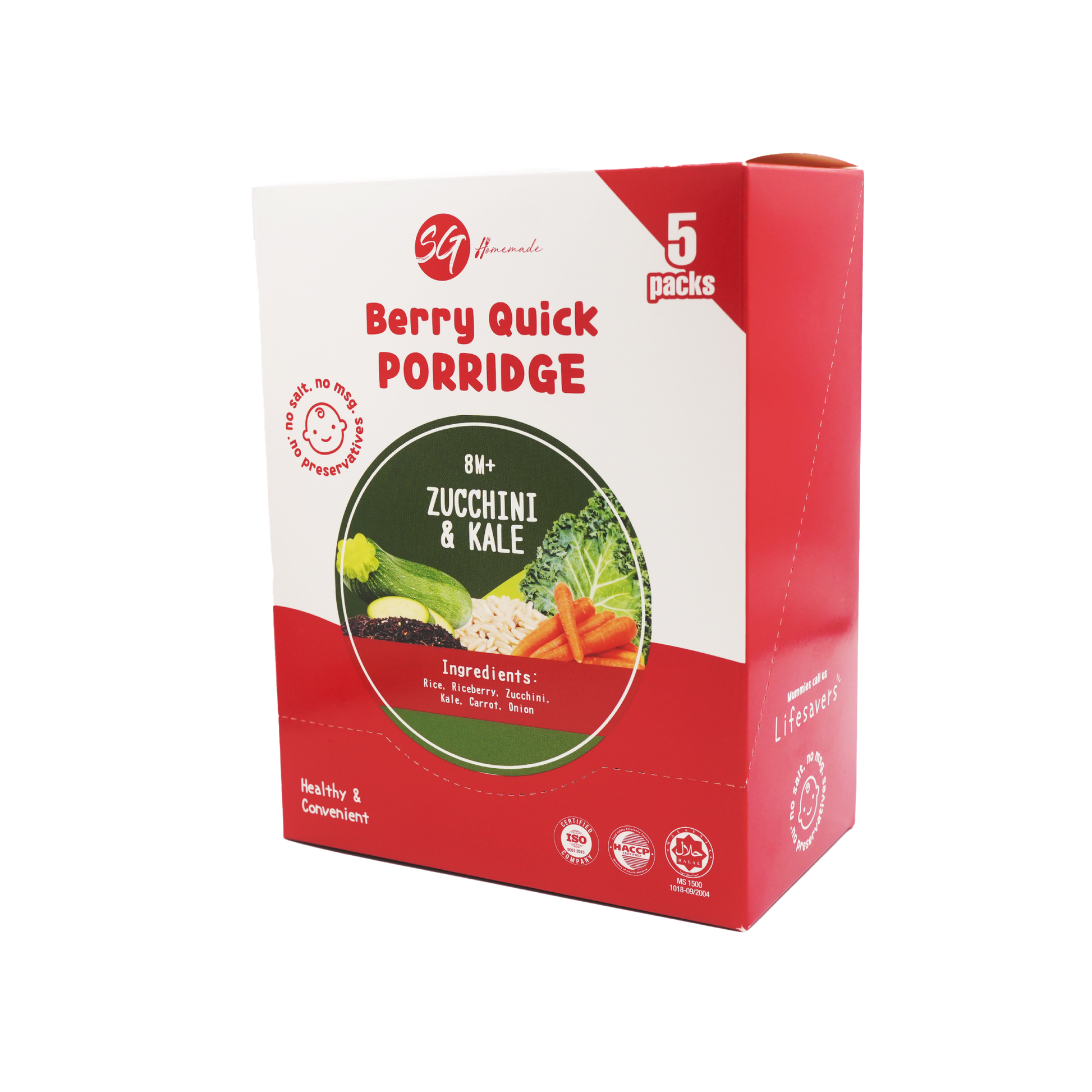 Struggling to please your picky eater? Our Zucchini & Kale Berry Quick Porridge has you covered! Made with a wholesome blend of sweet rice, zucchini, kale, carrot, onion, and riceberry. Each bowl of porridge packed with Vitamin A, K, and Magnesium, supports healthy growth, strong bones, and optimal development during those early years—delivering the perfect balance of taste and nutrition to keep them happy and thriving.