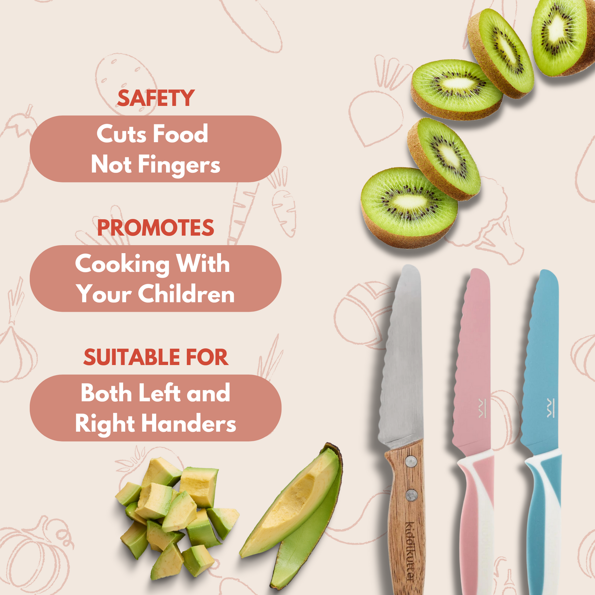 Our new Kiddikutter blade will let you cut an avocado on your hand without slipping and hurting yourself, so it’s a great tool for parents to use too. Bonus!