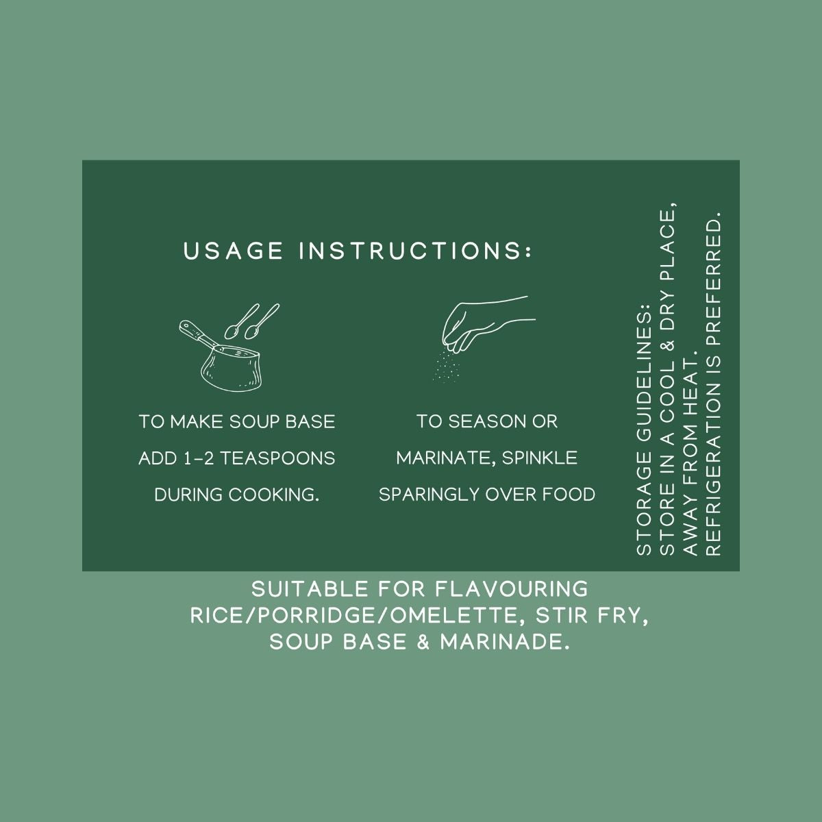 Add into baby/toddler porridge for a savoury taste (0.5 - 1 teaspoon per serving)