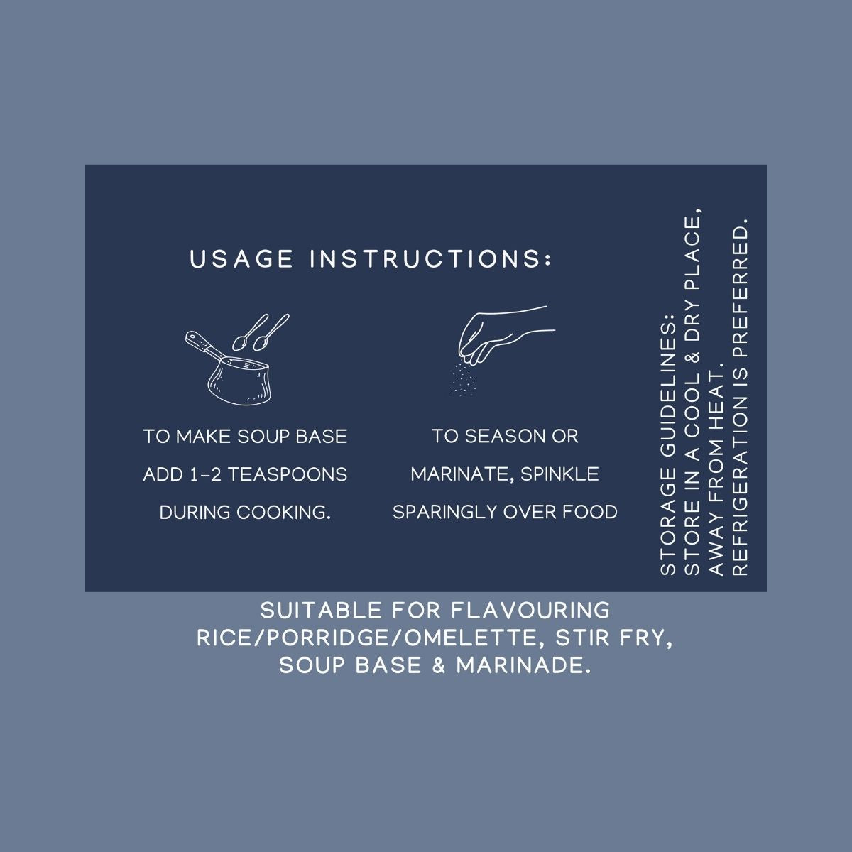Prepare to be captivated by an orchestra of enchanting aromas that will awaken your senses with every dish. The SG Homemade garlic powder releases a divine bouquet of pungent sweetness, while the onion powder delivers a harmonious blend of earthiness and mild sweetness. Finally, the scallop powder presents a delicate sea-infused scent, and its savoury taste of the ocean embracing every sense in your body.
