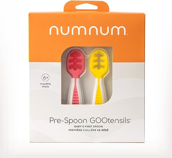 NumNum Pre-Spoon GOOtensil is a dip and eat silicone spoon for babies.