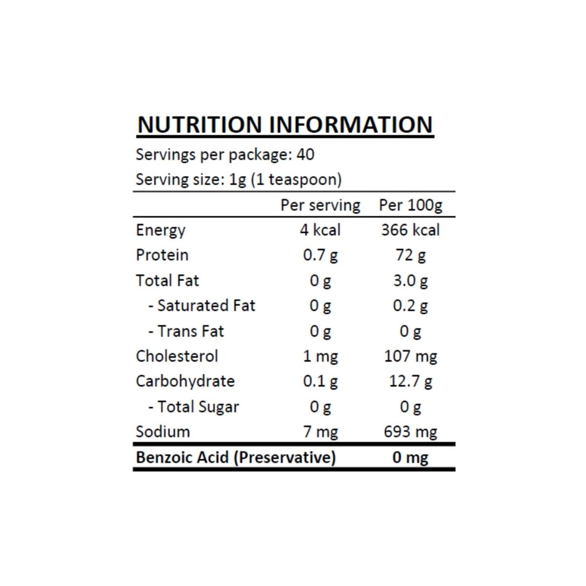 Add into baby/toddler porridge for savoury taste (0.5 - 1 teaspoon per serving)