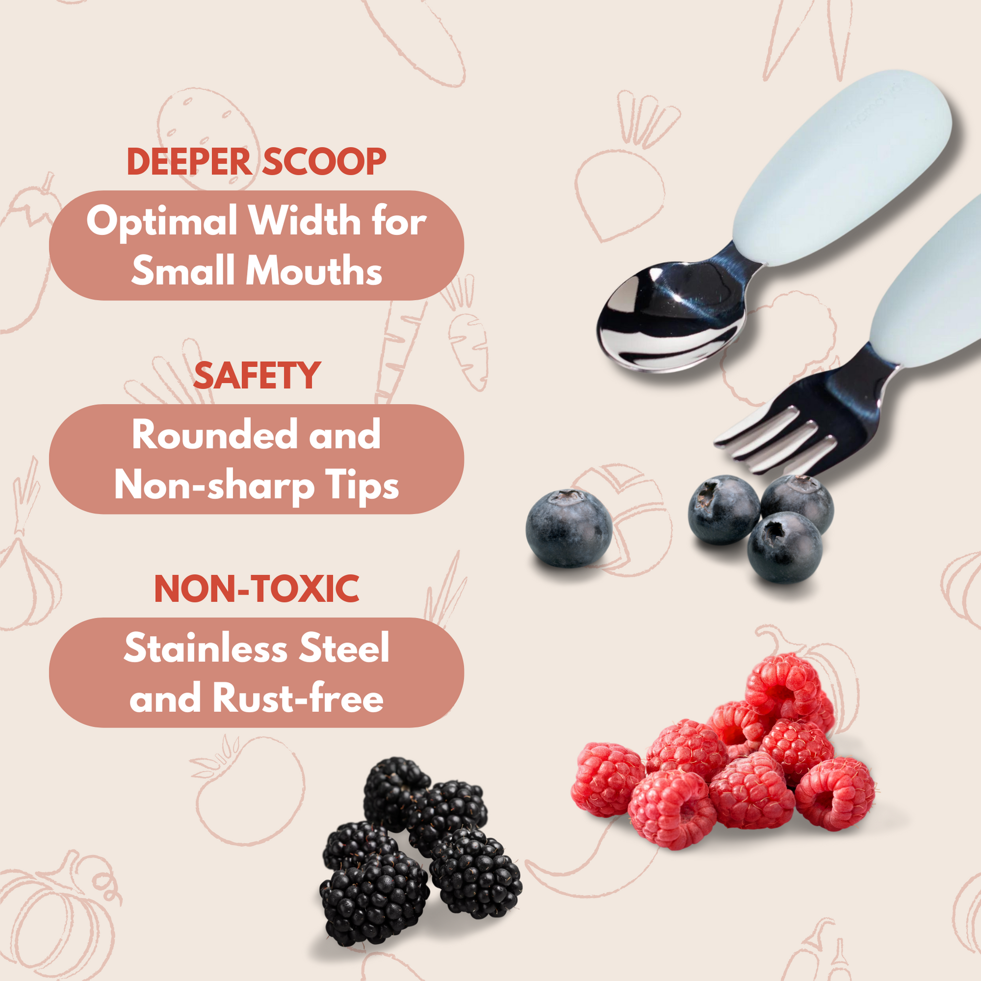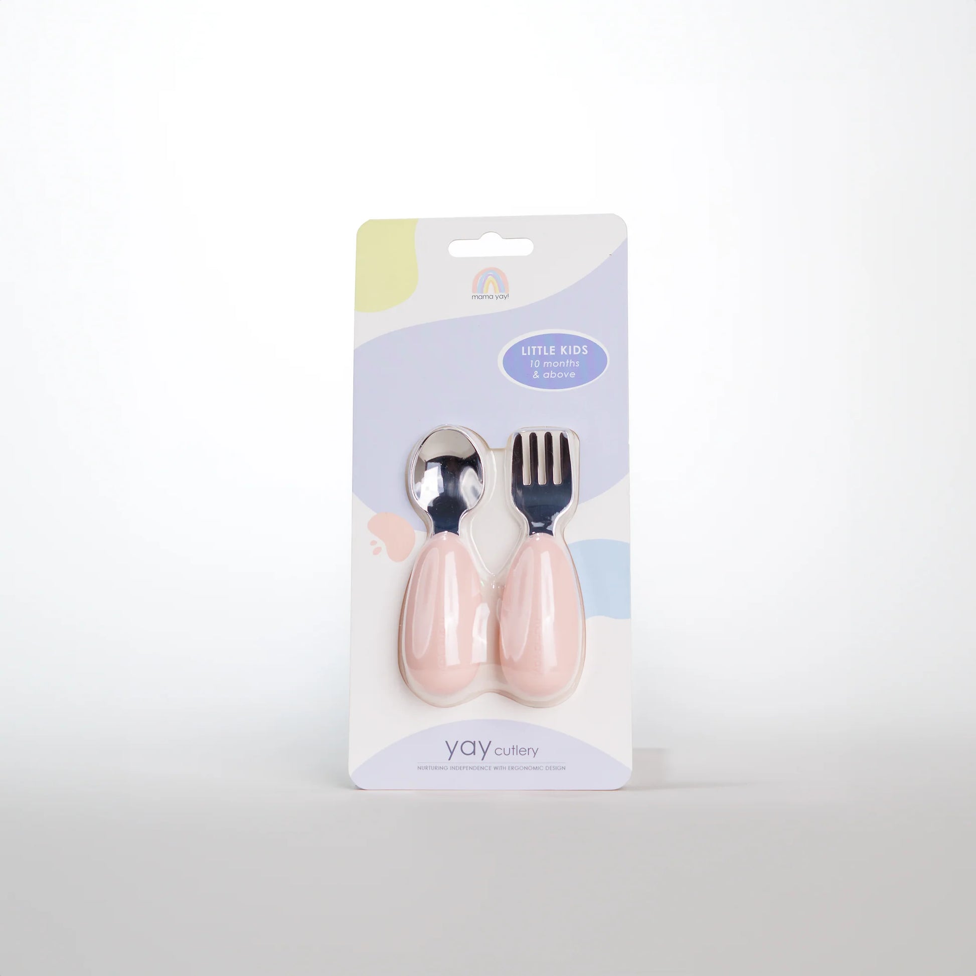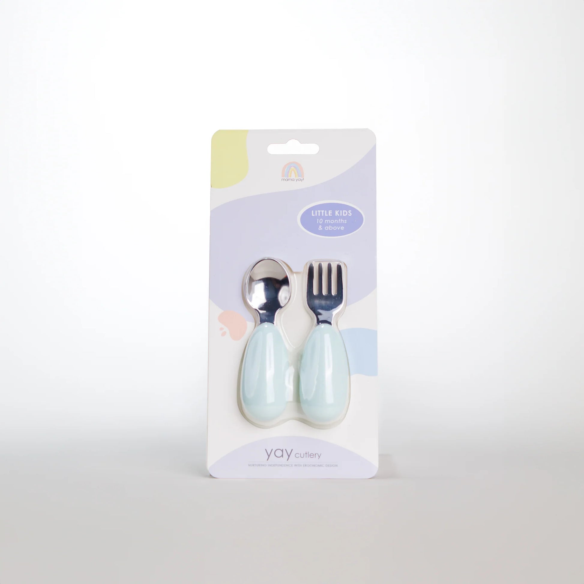 Nurture your baby's independence with our Baby-Led Weaning (BLW) spoon and fork set. Ergonomic short handles aid palmar muscle strength, fine motor sklills, and hand-eye coordination. Ergonomically designed for safety and comfort. Win at weaning with Yay Cutlery!